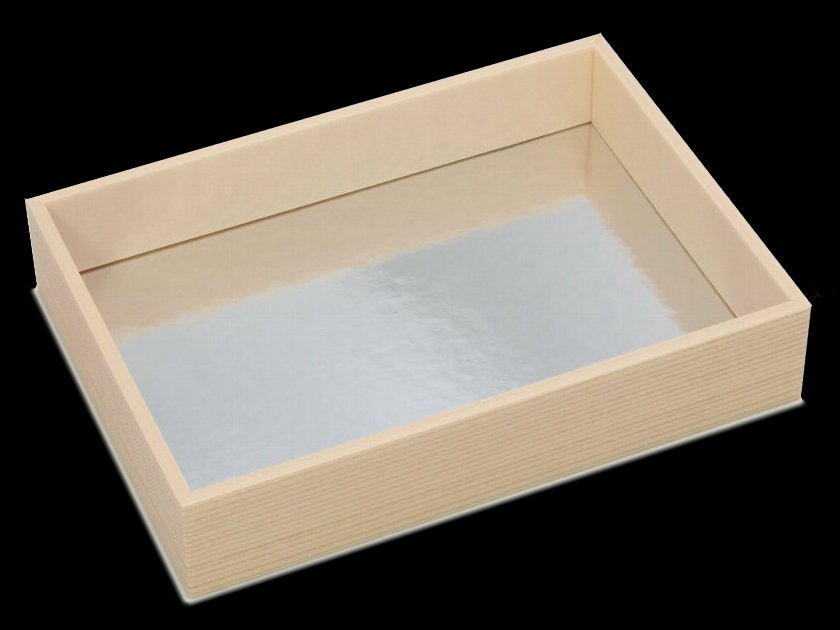 ポリスチレンを発泡させた板材を加工して製造する折箱です。